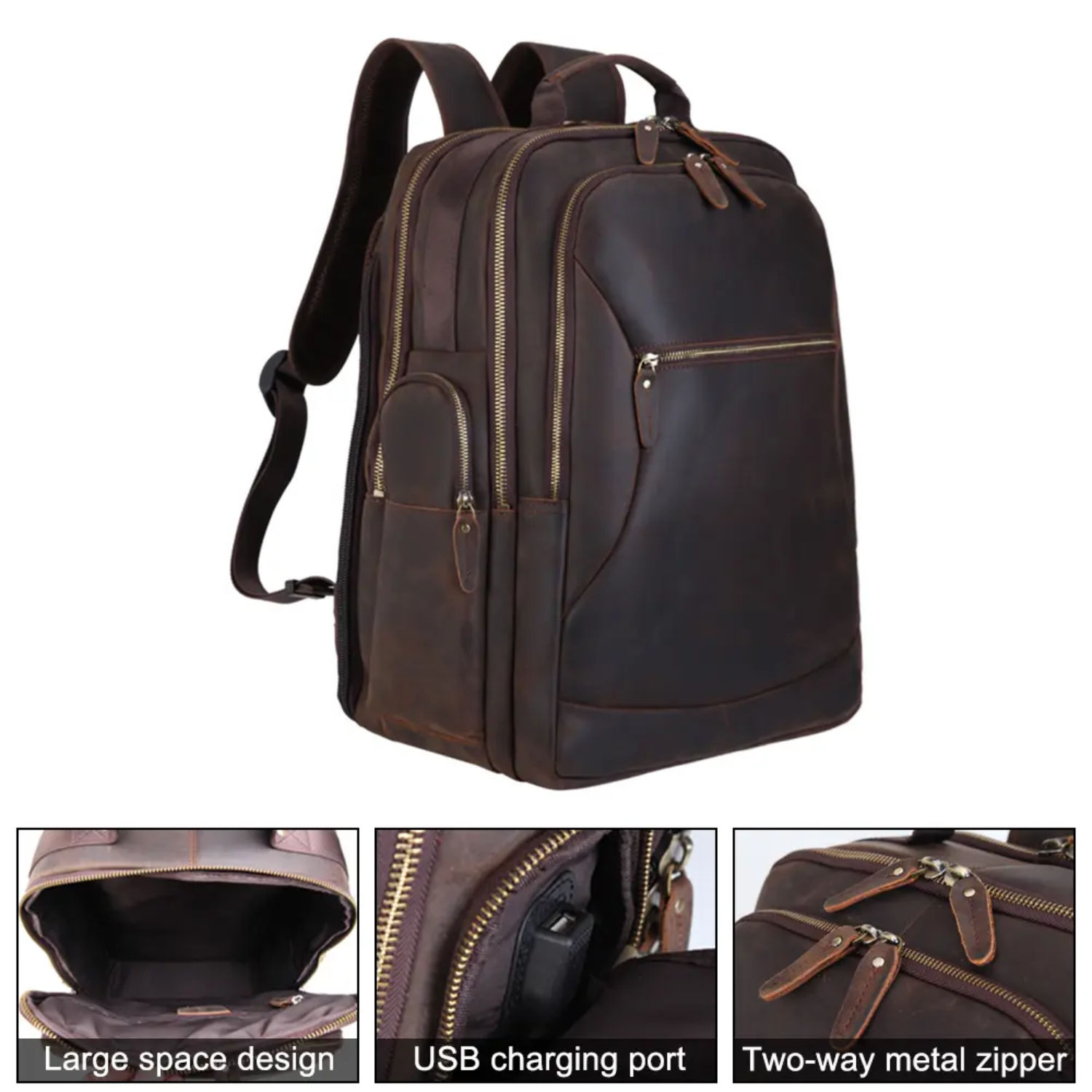 Meet Provo, a high-capacity leather backpack designed for those who need both space and convenience. Crafted from premium top-grain leather, this backpack is built to withstand the demands of travel, work, and outdoor adventures. With a unique stool pocket, you can take a break anywhere, anytime—perfect for explorers on the go.